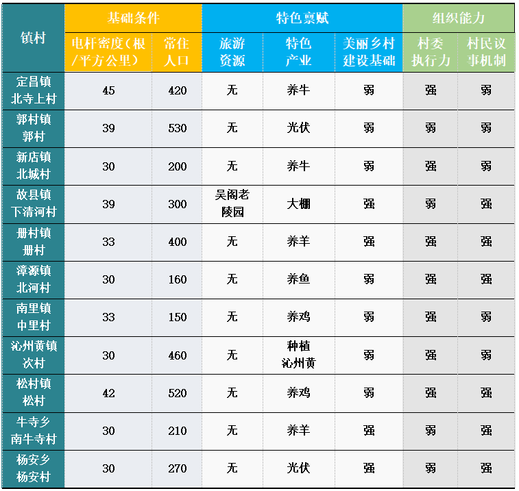 2.確定實(shí)施試點(diǎn)。按照“代表性、可復(fù)制性、示范性”原則,制定三方七項(xiàng)試點(diǎn)篩選標(biāo)準(zhǔn)(如表2),項(xiàng)目領(lǐng)導(dǎo)小組綜合考慮基礎(chǔ)條件、特色稟賦、組織能力等各方因素,選取故縣鎮(zhèn)供電所轄區(qū)下清河村為項(xiàng)目首個(gè)試點(diǎn)村(如圖3)。