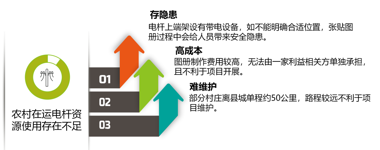 如果統(tǒng)一管理電桿下端桿體,利用張貼宣傳圖冊的方法宣傳鄉(xiāng)村特色文化,存在以下問題(如圖2):