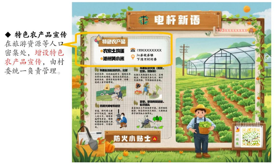 “電桿新語”建設(shè)與“一村一品牌一文化”的鄉(xiāng)村文化建設(shè)深度融合,助推鄉(xiāng)村振興再上臺階。下清河村試點(diǎn)實(shí)施后,解決了電桿被亂涂亂畫、張貼小廣告等影響鄉(xiāng)村美觀的問題,提升了鄉(xiāng)村環(huán)境整潔度;為村民提供便捷的大棚種植知識獲取通道,提升村民大棚種植積極性,2024年種植大棚達(dá)到50余個(gè),人均收入達(dá)到8000元以上。同時(shí),派出所、消防大隊(duì)通過宣傳,杜絕了該村村民被詐騙,增強(qiáng)了村民安全意識。