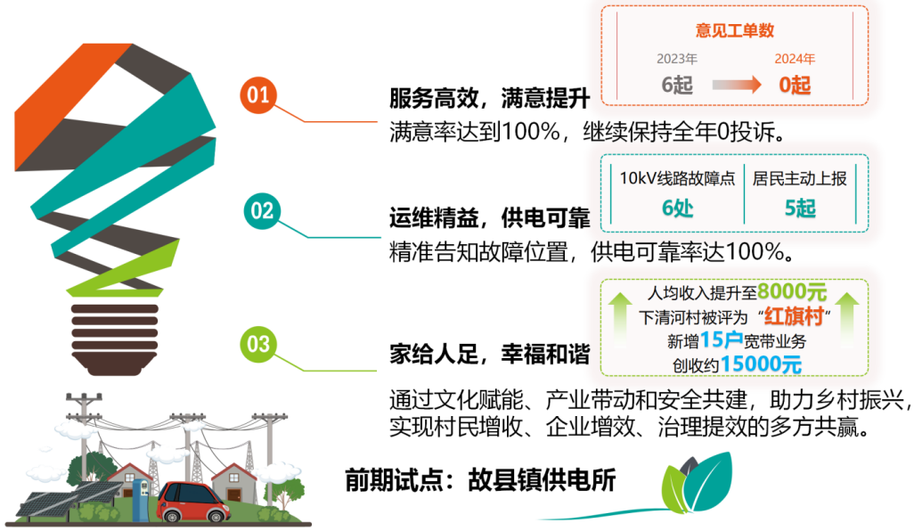 電桿文化宣傳,使居民掌握基本的安全用電、用網(wǎng)知識,電力設(shè)施外力破壞同比降低90%;學(xué)會(huì)對簡單故障的排查與處理,節(jié)約公司運(yùn)維成本,如果按照平均往返15公里計(jì)算,每次可以節(jié)約油費(fèi)11.25元。項(xiàng)目實(shí)施以后,該地區(qū)10千伏線路6處故障點(diǎn),有5起為居民主動(dòng)上報(bào),并精準(zhǔn)告知網(wǎng)格經(jīng)理故障位置,縮短尋找時(shí)間,節(jié)約費(fèi)用約3500元左右,2024年供電可靠率達(dá)到100%。通信公司通過宣傳減少線路私拉亂接率70%,網(wǎng)絡(luò)故障率同比下降30%,節(jié)約費(fèi)用約9000元,在該村新增15戶寬帶業(yè)務(wù)辦理,增加約15000元營業(yè)收入。